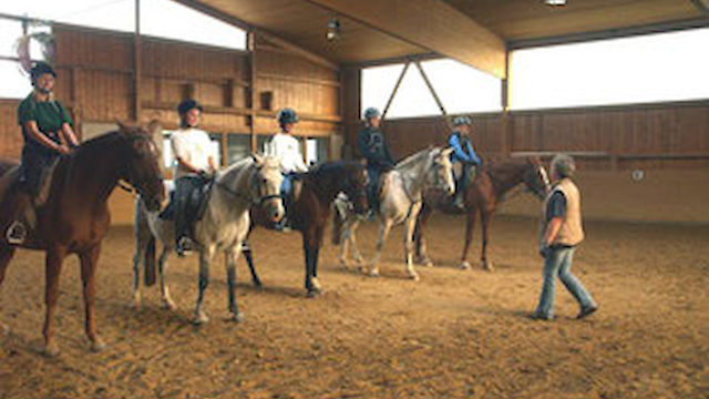 Beim Abteilungsreiten reiten die Reitschüler in einer Reitgruppe hintereinander her. Hier erlernt man das korrekte Reiten von Hufschlagfiguren, festigt seinen Sitz, sowie die Hilfengebung, hat jedoch trotzdem noch die Sicherheit, dass das Pferd der Reitgruppe folgt. Der Abteilungsunterricht findet in der Reithalle oder auf dem Reitplatz statt. Bei schönem Wetter reiten wir in den Sommermonaten auch durch unsere herrliche Landschaft.